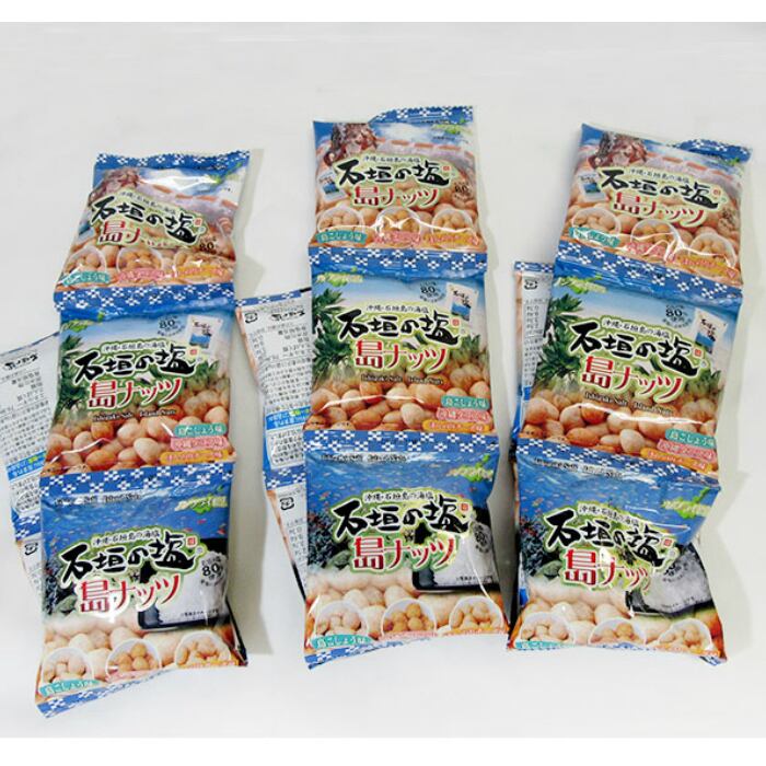 石垣の塩を使用した3種の味のサクサクした触感が楽しめるナッツです。15小袋入り